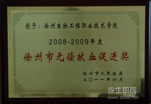 6月22日,徐州市無償獻血表彰大會在市血液中心召開。會上,我院被徐州市人民政府授予2008-2009年度“徐州市無償獻血促進獎”。