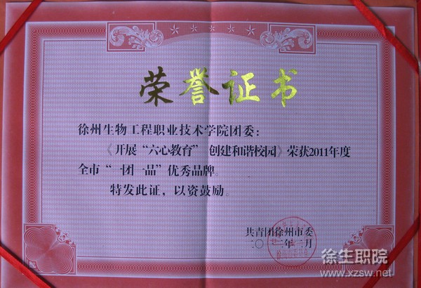 在2月25日召開的共青團(tuán)徐州市十七屆六次全委擴(kuò)大會(huì)議上,我校共青團(tuán)工作獲得2011年度全市共青團(tuán)工作績(jī)效考核一等獎(jiǎng),學(xué)校申報(bào)的《開展“六心”教育 創(chuàng)建和諧校園》共青團(tuán)工作品牌被評(píng)為2011年度徐州市“一團(tuán)一品”優(yōu)秀品牌。