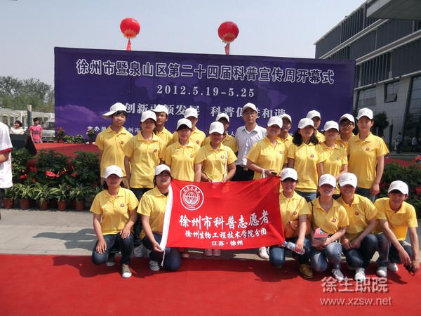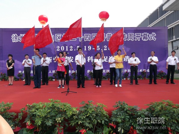 今年我市科普宣傳周主題為:創新引領發展、科普促進和諧“,旨在弘揚科學精神,宣傳科學知識,加強科普工作,使全社會真正形成講科學、愛科學、學科學和用科學的良好氛圍。開幕式上對徐州生物工程職業技術學院、中國礦業大學、江蘇師范大學、徐州空軍學院和徐州工程學院5家科普志愿者服務分團進行了授旗,院學生會主席賀瓊同學代表我院接旗。