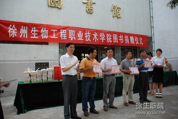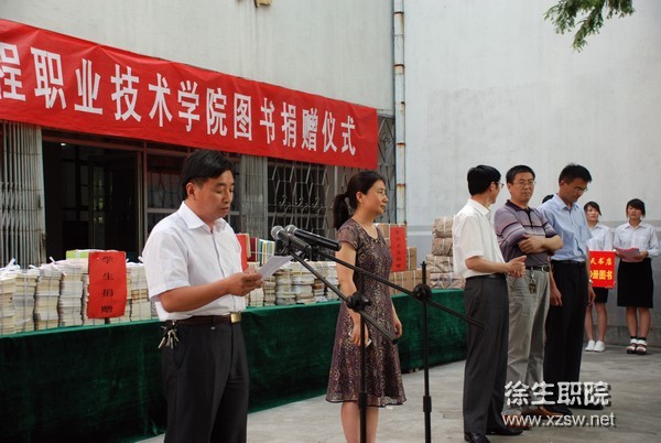 劉校長在主持時說,作為一所高等學校發(fā)展水平的重要標志,學校對圖書館的建設一直高度重視。自6月初工會、團委、信息中心聯(lián)合發(fā)出捐贈圖書的倡議以來,活動得到了全校師生員工的積極響應。黨員干部們帶頭捐書,離退休老同志送來多年珍藏的圖書,許許多多教工學生紛紛獻出自己精挑細選的圖書。活動還得到了社會熱心人士的大力支持,北京人天圖書有限公司向?qū)W校捐贈了1500冊圖書,學校友好企業(yè)向?qū)W校捐贈了一套價值1萬元的商務印書館漢譯世界學術名著叢書400余冊,短短一周內(nèi)共收到文學、藝術、管理、農(nóng)林牧副漁等各類圖書共3500余冊,連日來,圖書館成了大家“熱愛徐生、支持徐生、建設徐生”深情厚誼集中表達的場所。