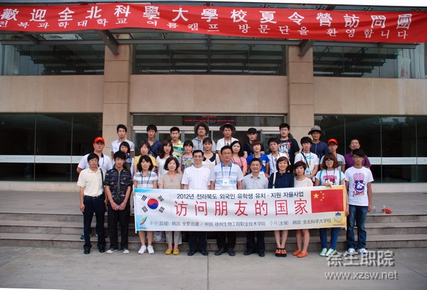 在慶祝中韓兩國(guó)建交20周年的日子里,韓國(guó)全北科學(xué)大學(xué)21名師生赴我校的“友好交流夏令營(yíng)活動(dòng)”,于8月23日至27日?qǐng)A滿舉行。韓方師生由該校國(guó)際教育學(xué)院金一中院長(zhǎng)帶領(lǐng),在徐進(jìn)行了為期5天的友好交流訪問(wèn)活動(dòng),我校負(fù)責(zé)全程組織和接待工作。校黨委書記、校長(zhǎng)蔣留生、副校長(zhǎng)秦越華、劉明生會(huì)見了夏令營(yíng)師生并分別陪同活動(dòng),市外事辦副主任孫衛(wèi)民同志一同陪同。