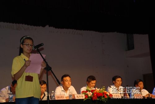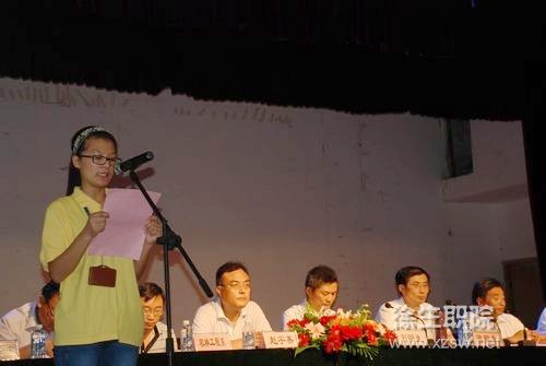 會上,教師代表強承魁老師和學生代表海潮分別作了發言。