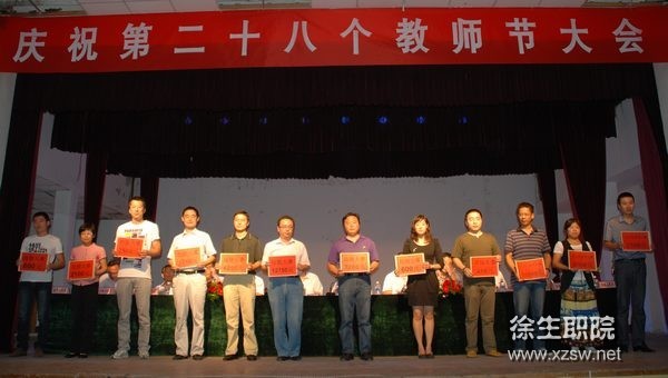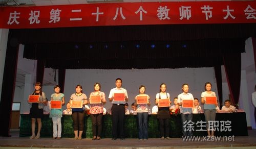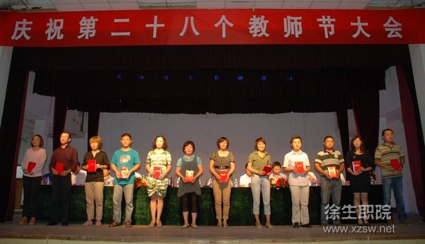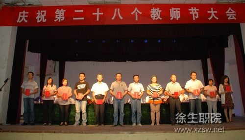 會上宣讀了省農業委員會,對口幫扶鎮邳州新河鎮黨委、鎮政府,校企合作單位蘇州三星半導體有限公司的教師節賀信,副校長劉明生宣讀了表彰文件。大會對我校2011年度校先進工作者、優秀班主任、三十年教齡教師、徐州市第五批拔尖人才、雙師型教師、取得碩士學位的教師和2011-2012學年信息化大賽和技能競賽的獲獎教師進行了表彰,并頒發了榮譽證書或獎金。