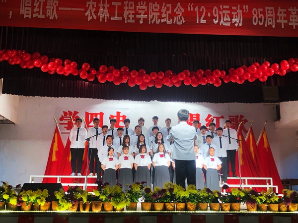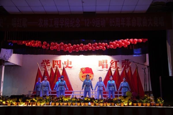 為紀念學生抗日救亡運動,大力弘揚愛國主義精神,進一步強化“四史”學習教育,汲取前行力量,11月26日晚,農林工程學院隆重舉辦紀念“一二?九運動”85周年革命歌曲大競唱。農林工程學院黨總支書記王勝永、院長李新、黨總支副書記陶佩琳,學院團委李棟老師和全體班主任擔任了本次比賽的評委。