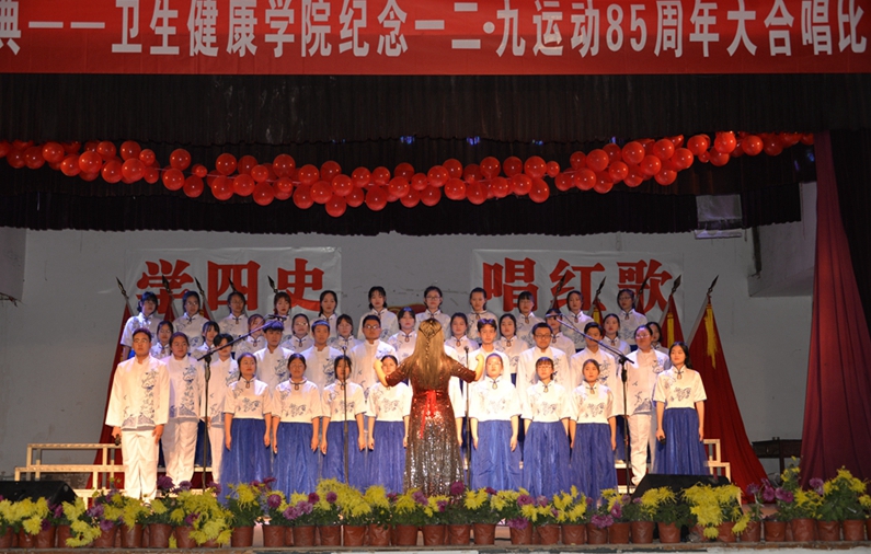 為弘揚愛國精神,傳唱紅色經典,增強班級凝聚力,豐富校園文化生活,衛生健康學院于11月27日晚在學院大禮堂舉行“一二﹒九”紅歌大合唱比賽。學工處處長郭士焱、體育部部長宋廣俠、衛生健康學院副院長丁梁斌、副書記姚靜怡、副院長馬春梅、工會主席王訓宇老師,體育部程曉星老師、學院團委李棟老師以及衛生健康學院輔導員和全體師生參加了此次活動。