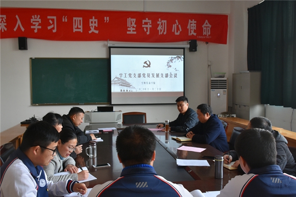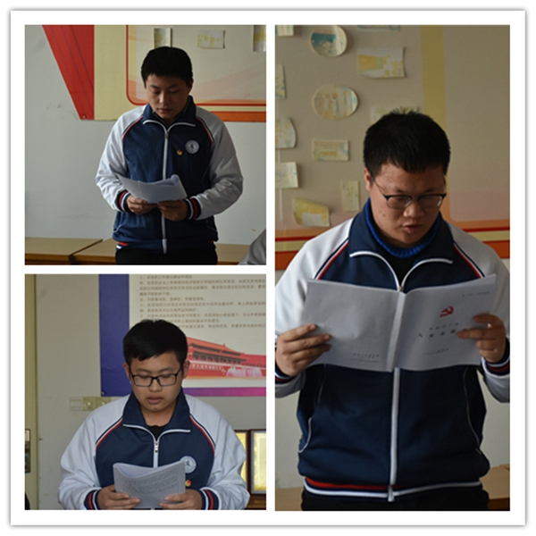會議嚴格按照黨組織接收預備黨員程序進行,大會開始,發展對象們逐一宣讀《入黨志愿書》,并向黨組織匯報自身對黨的認識、入黨動機、個人經歷以及在校表現等,隨后入黨介紹人分別向大會介紹三名同學主要政治思想、學習、工作生活等情況,史少偉同志向大會報告三名同學現實表現的考察情況以及綜合政治審查情況,與會黨員對發展對象是否符合黨員條件發表了意見。大會認為張萬池、楊定旭、杜坤三名同學基本符合黨員條件,經與會正式黨員投票表決,大會一致同意接收張萬池、楊定旭、杜坤三名同學成為中共預備黨員。