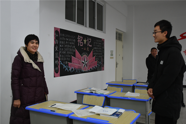 走訪到機高192班學生時,譚紅玲駐足班主任寄語和班級光榮榜前,充分肯定班主任工作用心,贊賞班級文化布置有新意。她與一等獎學金獲得者及班級主要學生干部同學親切交流時,勉勵同學:尺有所短,寸有所長,能到職業學院學習,是同學們難得的舞臺,只要你們努力,一定會收獲美好未來。